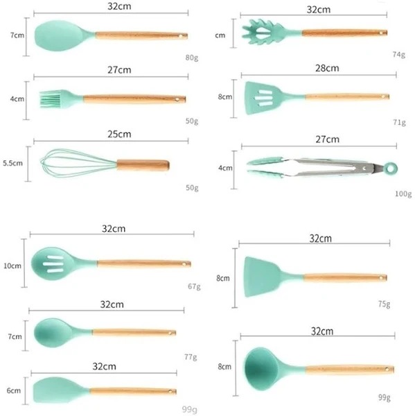 O Conjunto de Utensílios de Cozinha com 12 Peças é o parceiro perfeito para suas aventuras culinárias, oferecendo uma variedade de ferramentas essenciais para tornar o processo de cozinhar mais fácil e eficiente. Feitas de silicone macio com cabos de madeira, as espátulas proporcionam uma aderência confortável e firme durante o uso.