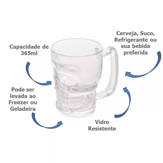 Conteúdo da embalagem/kit: 06 caneca em formato de caveira de 365ml