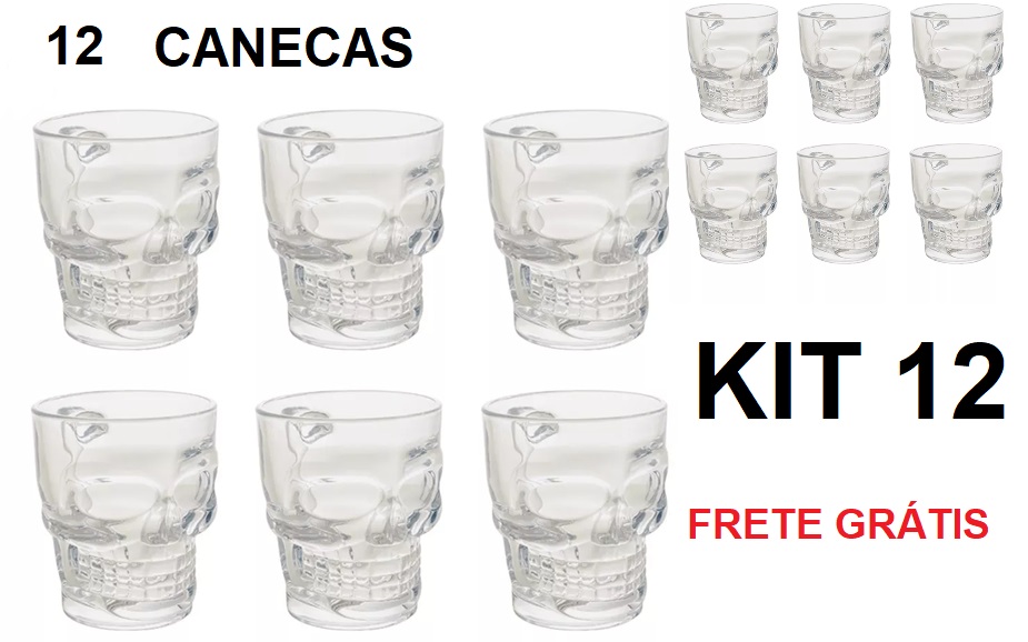 Kit 12 Caneca Chopp Caveira 365ml Copo Skull Cerveja Rock