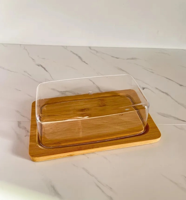 Manteigueira de bambu com tampa Confeccionada em bambu e acrílico, a manteigueira é um exemplo de design delicado e contemporâneo. Sua leveza torna-a fácil de manusear, enquanto sua aparência moderna eleva a estética da sua mesa.
