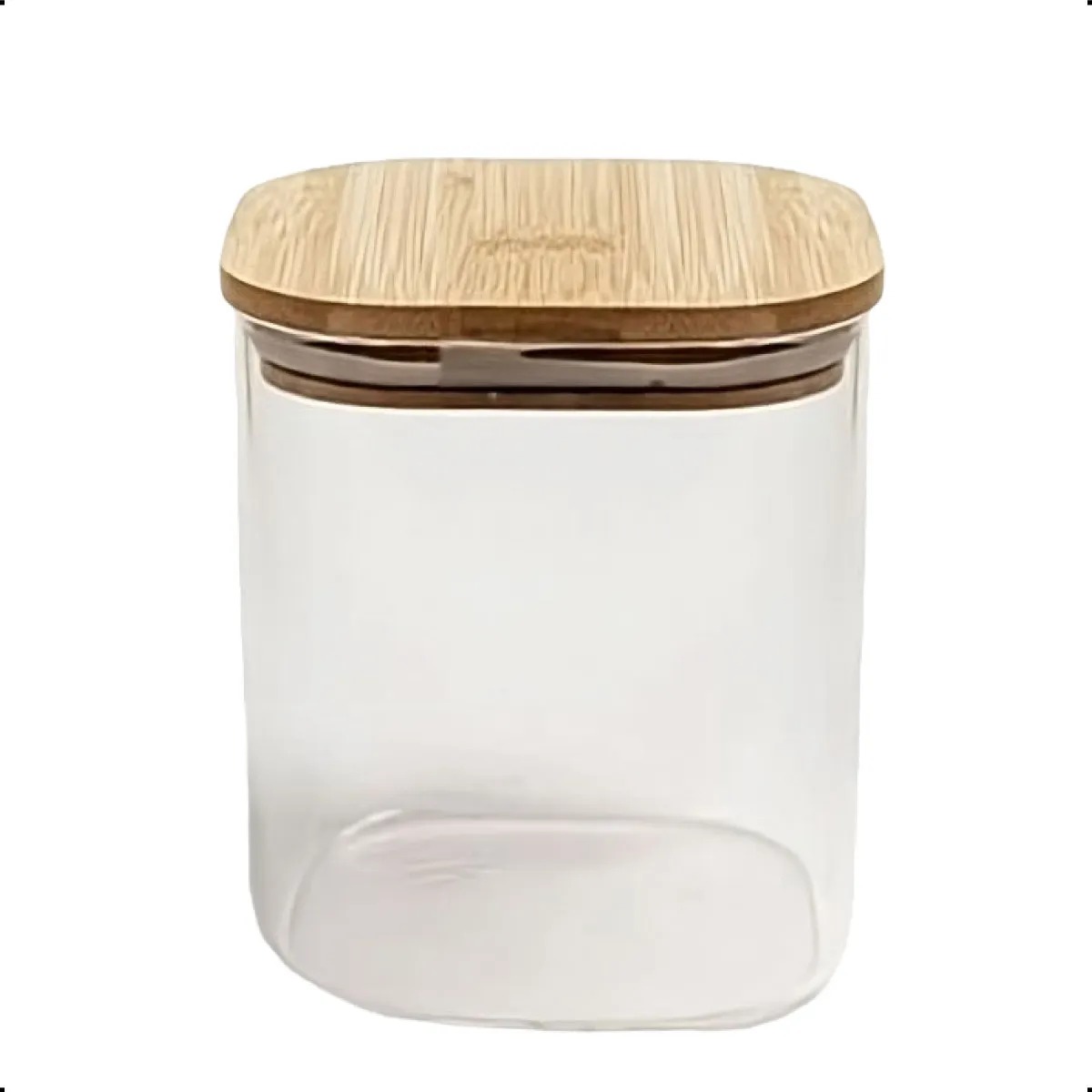 Pote 800ml De Vidro Empilhável Com Tampa De Bambu Quadrado