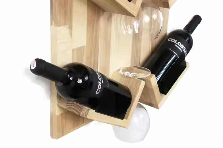 O WineWall Artisan é um suporte de vinho artesanal montado na parede, feito em madeira maciça de pinho e desenvolvido para quem aprecia um toque de elegância natural em sua decoração.